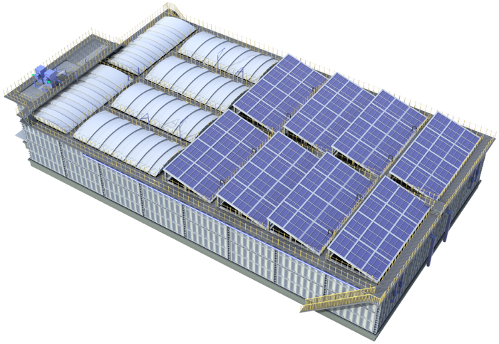 Sup-ASS更具革命性的是其建造模式。項(xiàng)目采用標(biāo)準(zhǔn)化鋼制模塊預(yù)制拼裝技術(shù),通過智能化流水線生產(chǎn)的正弦波波紋板模塊,以螺栓鎖扣實(shí)現(xiàn)精準(zhǔn)裝配。相較于傳統(tǒng)鋼筋混凝土結(jié)構(gòu),該技術(shù)使工期縮短70%,建設(shè)周期從常規(guī)的6-8個月壓縮至3個月,且模塊可100%拆卸循環(huán)使用。Sup-ASS產(chǎn)品經(jīng)理指出,這種“移動式水廠”設(shè)計(jì),完美適應(yīng)了城鎮(zhèn)污水量動態(tài)變化的特點(diǎn),為未來污水處理設(shè)施的彈性布局提供了可能。