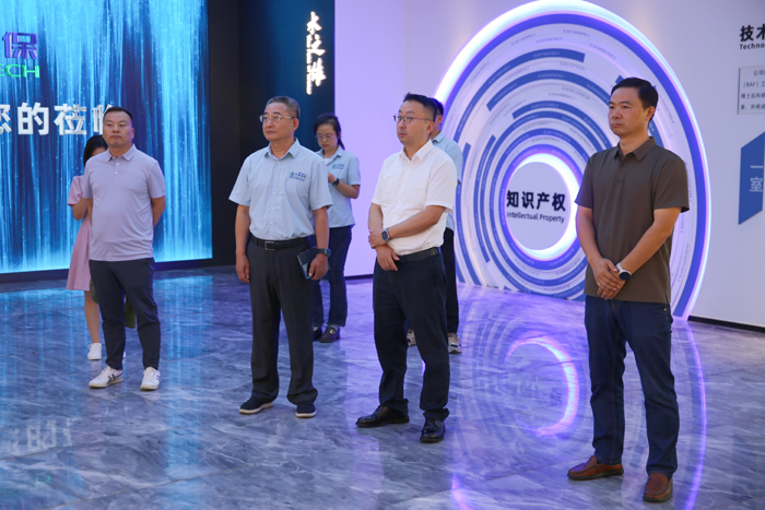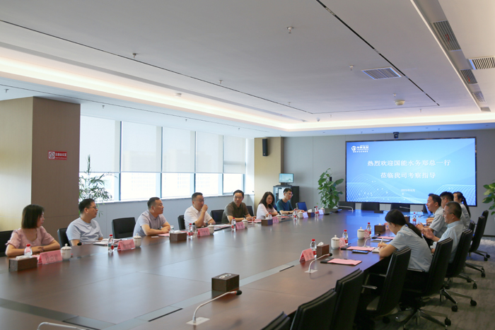8月6日上午,國能水務(wù)環(huán)保有限公司總經(jīng)理鄭鵬一行蒞臨安徽華騏環(huán)??萍脊煞萦邢薰究疾旖涣鳌?疾靾F(tuán)先后參觀了華騏環(huán)??偛俊ⅠR鞍山市華騏污水處理有限公司、安徽華騏蔚藍(lán)智能裝備有限公司。華騏環(huán)保副董事長、首席科學(xué)家鄭俊教授等公司領(lǐng)導(dǎo)參加接待。