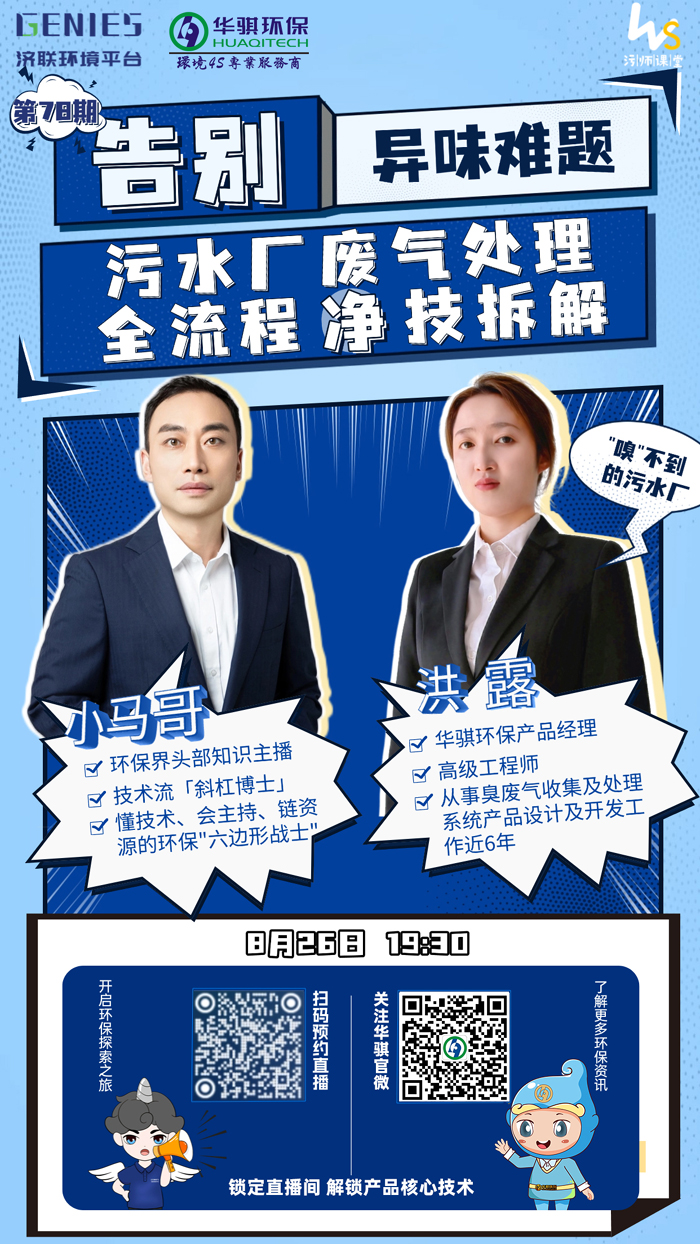 預告!8月26日19:30 | 直播:告別異味難題 污水廠廢氣處理全流程“凈”技拆解