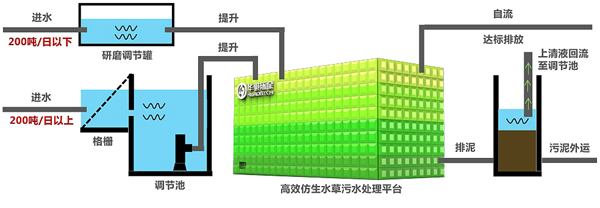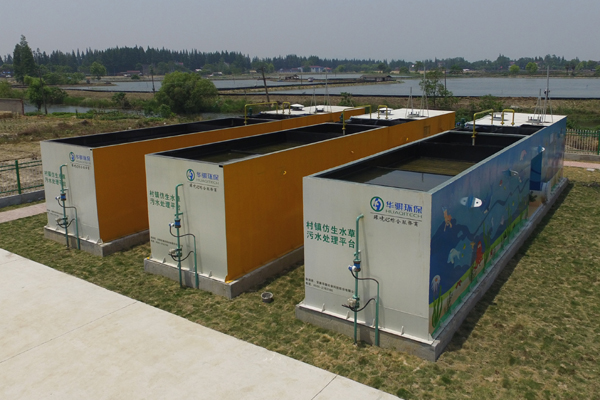 “高效仿生水草污水處理平臺”是針對鄉(xiāng)鎮(zhèn)、農(nóng)村等中小型污水處理項目開發(fā)的,是脫氮除磷村鎮(zhèn)污水處理專利技術(shù)(專利號ZL201310179893.6)的良好應(yīng)用。該平臺改變了現(xiàn)有很多小型生活污水處理裝置雖然結(jié)構(gòu)上實現(xiàn)了一體化,但附屬設(shè)備多、結(jié)構(gòu)不緊湊、抗沖擊負(fù)荷差等缺點。