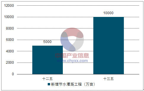 建設(shè)面積方面,根據(jù)國(guó)家農(nóng)業(yè)節(jié)水綱要(2012-2020)的規(guī)劃,到2020年全國(guó)農(nóng)田有效灌溉面積達(dá)到10億畝,新增節(jié)水灌溉工程面積3億畝,其中新增高效節(jié)水灌溉工程面積1.5億畝以上。“十三五”期間,國(guó)家將新增高效節(jié)水灌溉面積1億畝,較“十二五”期間新增5000萬(wàn)畝量翻一倍。
