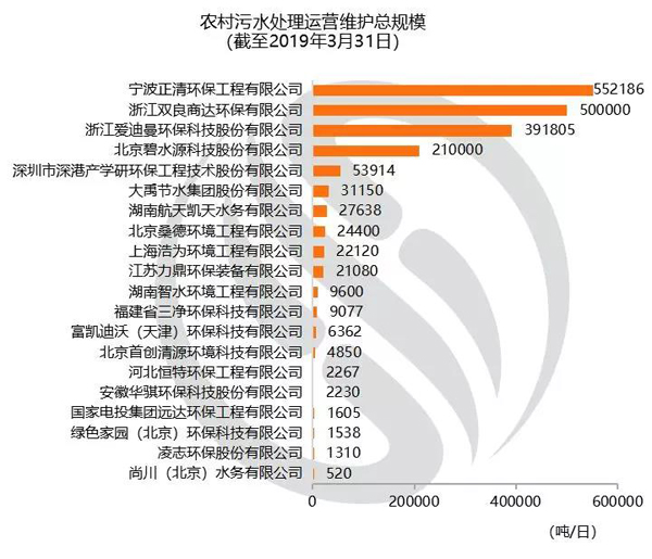 備注:該排名為企業(yè)中標(biāo)簽約且參與項(xiàng)目運(yùn)營(yíng)維護(hù)的農(nóng)村污水處理項(xiàng)目設(shè)計(jì)能力加總。