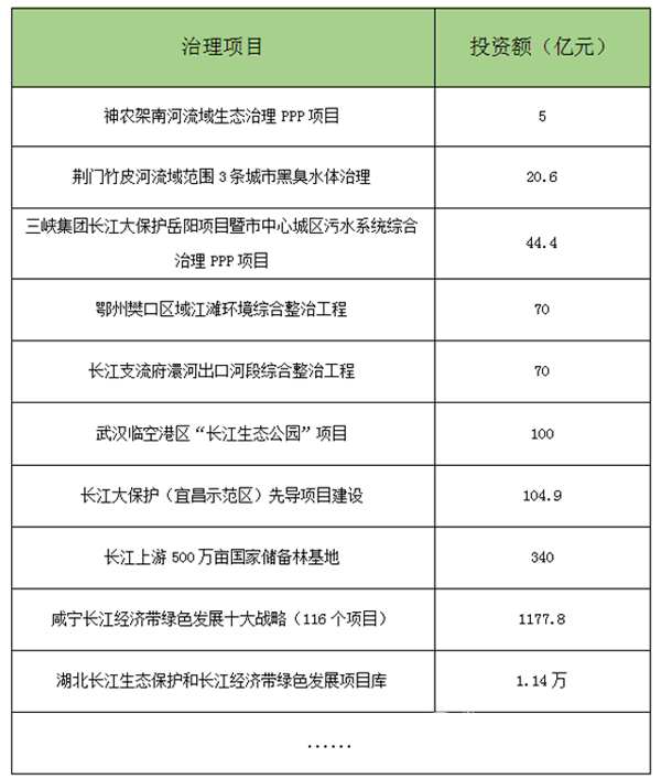 當(dāng)然,長江生態(tài)環(huán)境保護作為一個系統(tǒng)性工程,要打一場持久戰(zhàn),其資本投入體量一定是巨大的,僅從部分治理項目的投資上就能看到端倪。