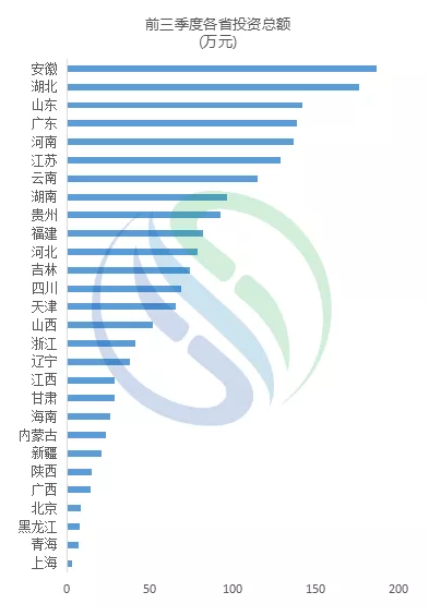從全國范圍來看,胡煥庸線的右側(cè)的水務(wù)市場欣欣向榮,投資額排名靠前的省份多為胡煥庸線右側(cè)的省份。安徽、湖北、山東、廣東、河南、江蘇、云南,這7個省份的投資額已經(jīng)超過100億元,長江大保護(hù)為長江沿岸各省份水務(wù)市場打開了一扇窗,安徽、湖北相繼出現(xiàn)多個大的水務(wù)項(xiàng)目,這兩個省份的投資額分別為186億元和176億元。