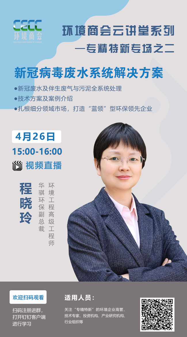 預(yù)告:4月26日《新型冠狀病毒廢水系統(tǒng)解決方案》環(huán)境商會云講堂開講