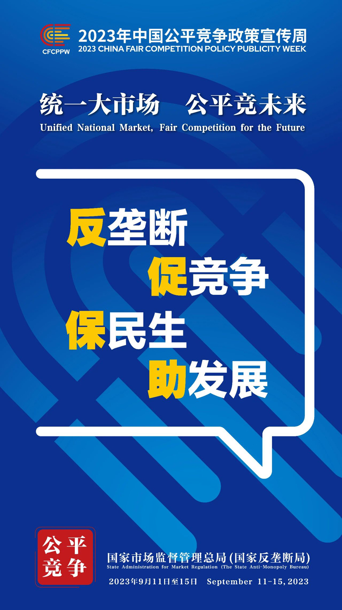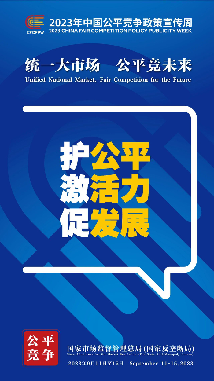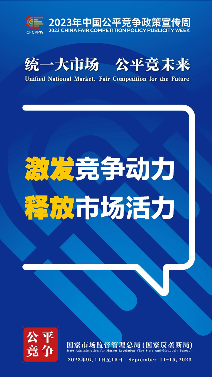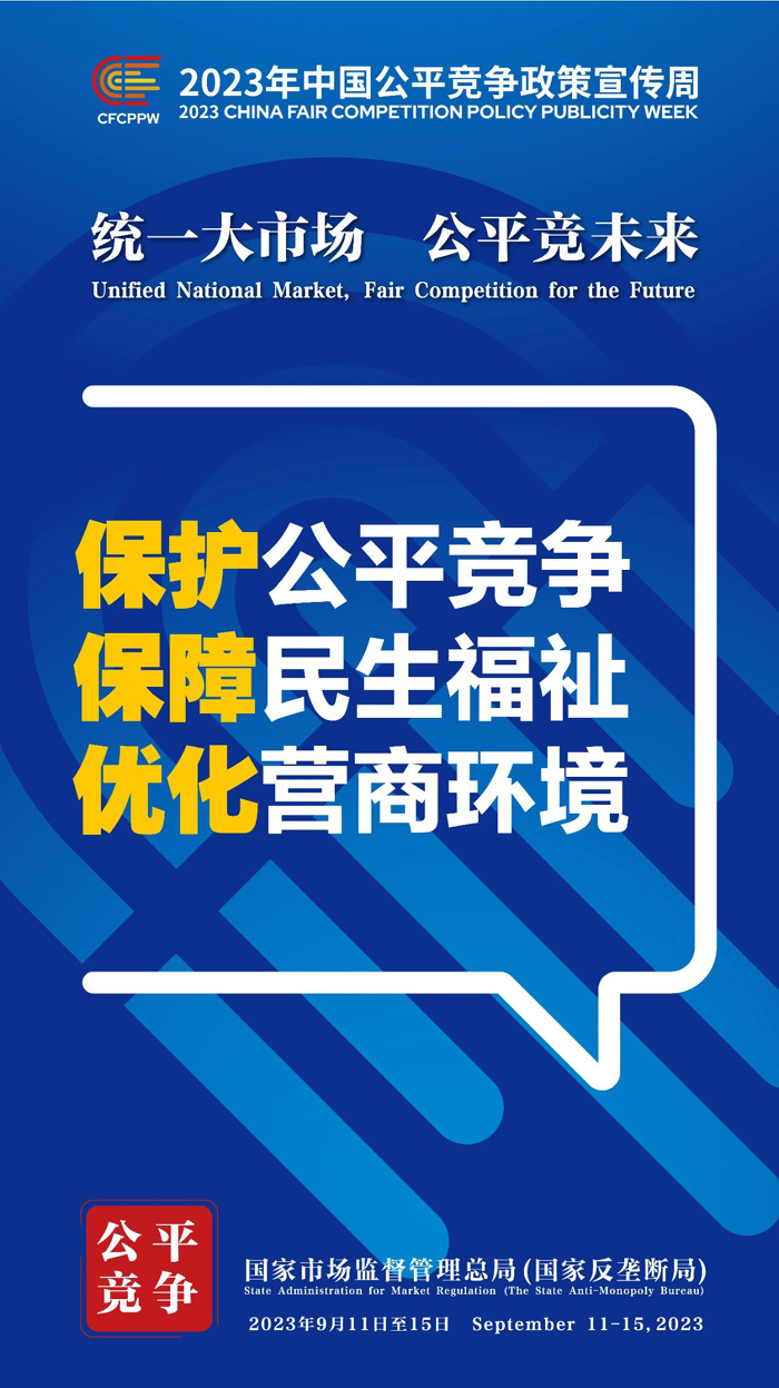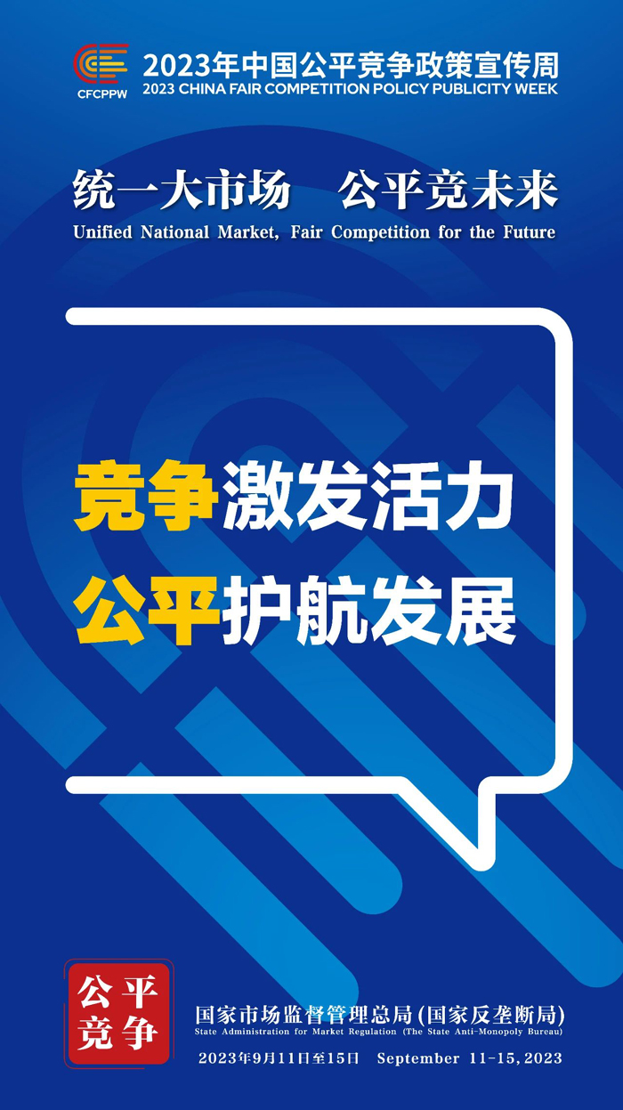 公平競爭是市場經濟的基本原則,是市場機制高效運行的重要基礎。近年來,在黨中央、國務院堅強領導下,我國公平競爭治理取得重要成就,公平競爭制度不斷完善,公平競爭秩序穩(wěn)步向好,公平競爭理念深入人心,競爭領域制度型開放持續(xù)拓展。舉辦2023年中國公平競爭政策宣傳周,大力培育和弘揚公平競爭文化,是貫徹落實黨中央、國務院有關決策部署的重要舉措,對引導全社會形成公平競爭的良好風尚、促進經濟實現質的有效提升和量的合理增長具有重要作用。