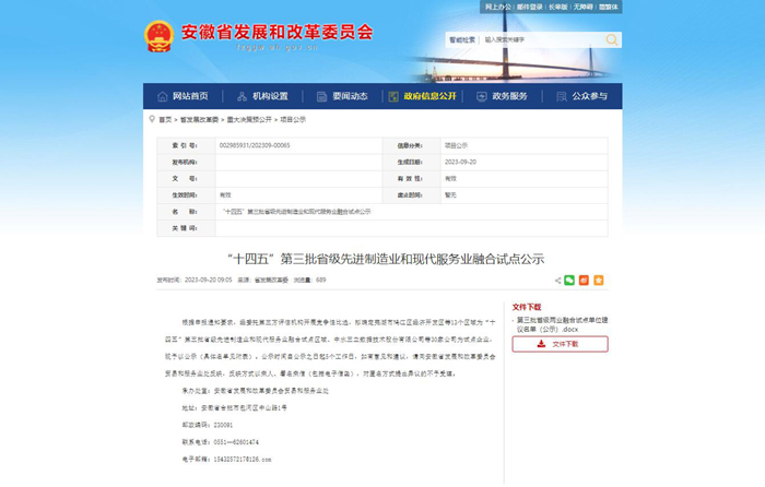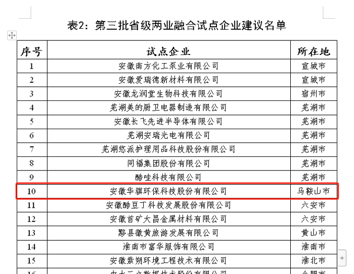 近日,安徽省發(fā)展和改革委員會網站發(fā)布《“十四五”第三批省級先進制造業(yè)和現代服務業(yè)融合試點公示》,確定30家單位為第三批省級兩業(yè)融合試點企業(yè),安徽華騏環(huán)??萍脊煞萦邢薰境晒θ脒x!
