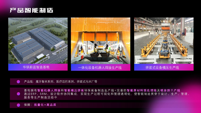 華騏環(huán)保旗下的蔚藍(lán)智能裝備制造基地,擁有包括魔方智水系列、拼裝式污水廠系列、醫(yī)療邁巴系列、精細(xì)格柵系列等多條產(chǎn)品線。