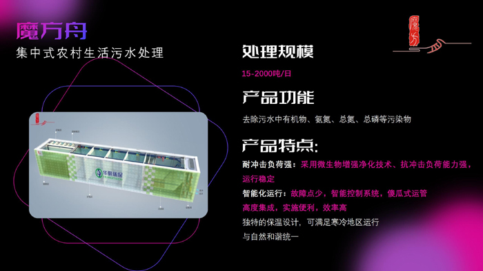 另外,還有針對小型分散式農(nóng)村生活污水處理場景的魔方格產(chǎn)品,具有能耗低、運(yùn)行簡單穩(wěn)定兩大特色,日處理水量5噸的魔方格一天僅需一度電。